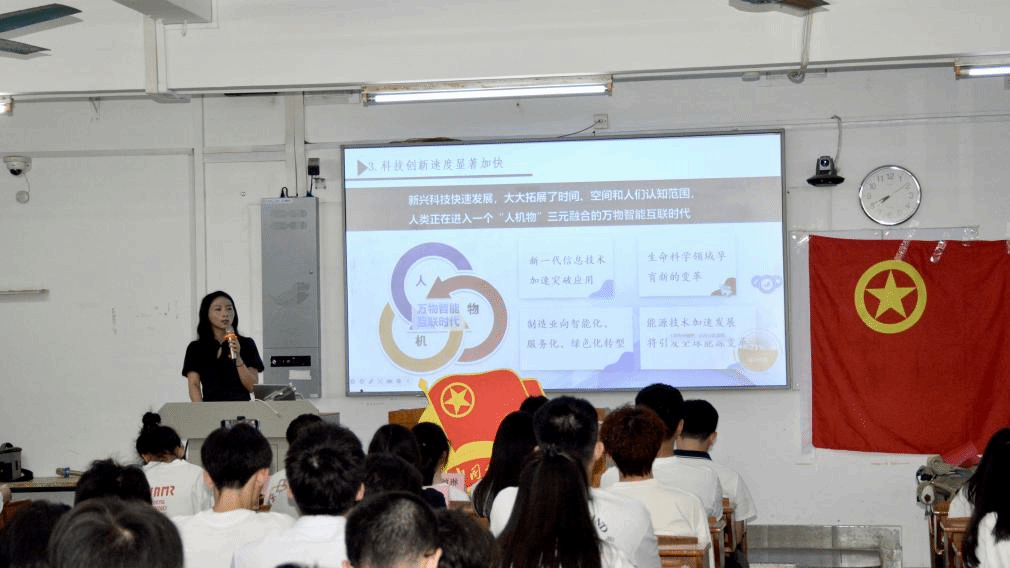钟翠老师以“激发青年向‘新’力 推动仲园高质量发展”为题,通过深入浅出的讲解,清晰阐述了新质生产力的概念和丰富内涵,通过生动的案例强调了新质生产力的重要作用。她提出,学校是孕育科技创新人才的沃土和培养新质生产力的摇篮,青年学生群体是最富有活力和创新的群体。新时代青年要积极投身祖国科技创新,推进国家高质量发展,在机遇和挑战中建功立业、挺膺担当。
