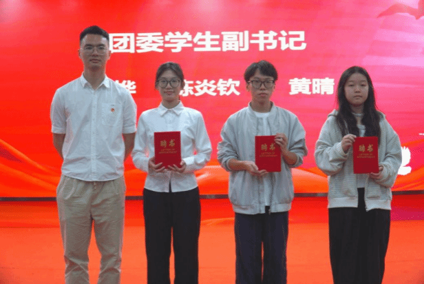 随后,大会进入学院新一届学生骨干聘任仪式环节。黎耀元老师宣读2025-2026学年党务中心、团委、学生会、青协及辅导员助理的聘任名单。新任骨干们依次有序上台,从老师手中接过聘书。这份聘书,不仅是一份认可,更是沉甸甸的责任与嘱托。